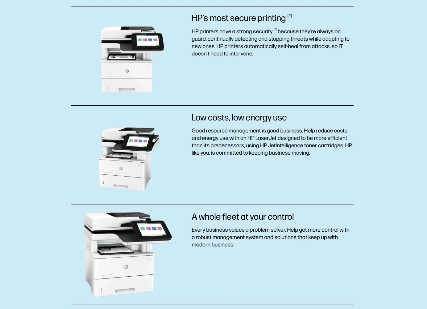 | Energy efficiency | HP Auto-On/Auto-Off, Instant-on Technology, Blue Angel, ENERGY STAR® certified |