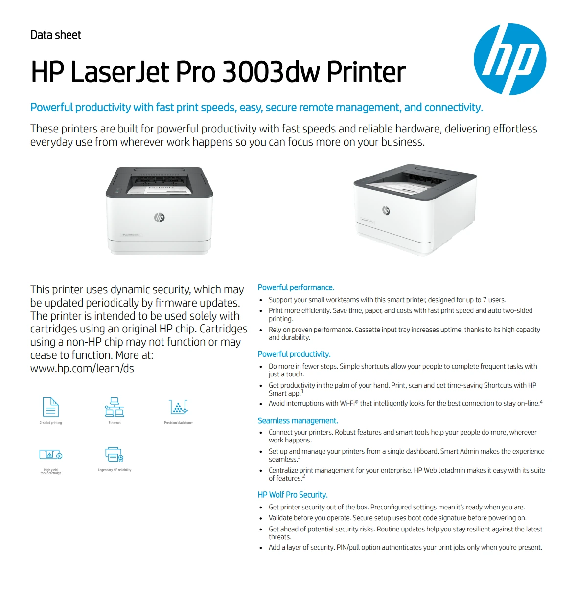 Specifications for – HP Laserjet Pro 3003dw Printer