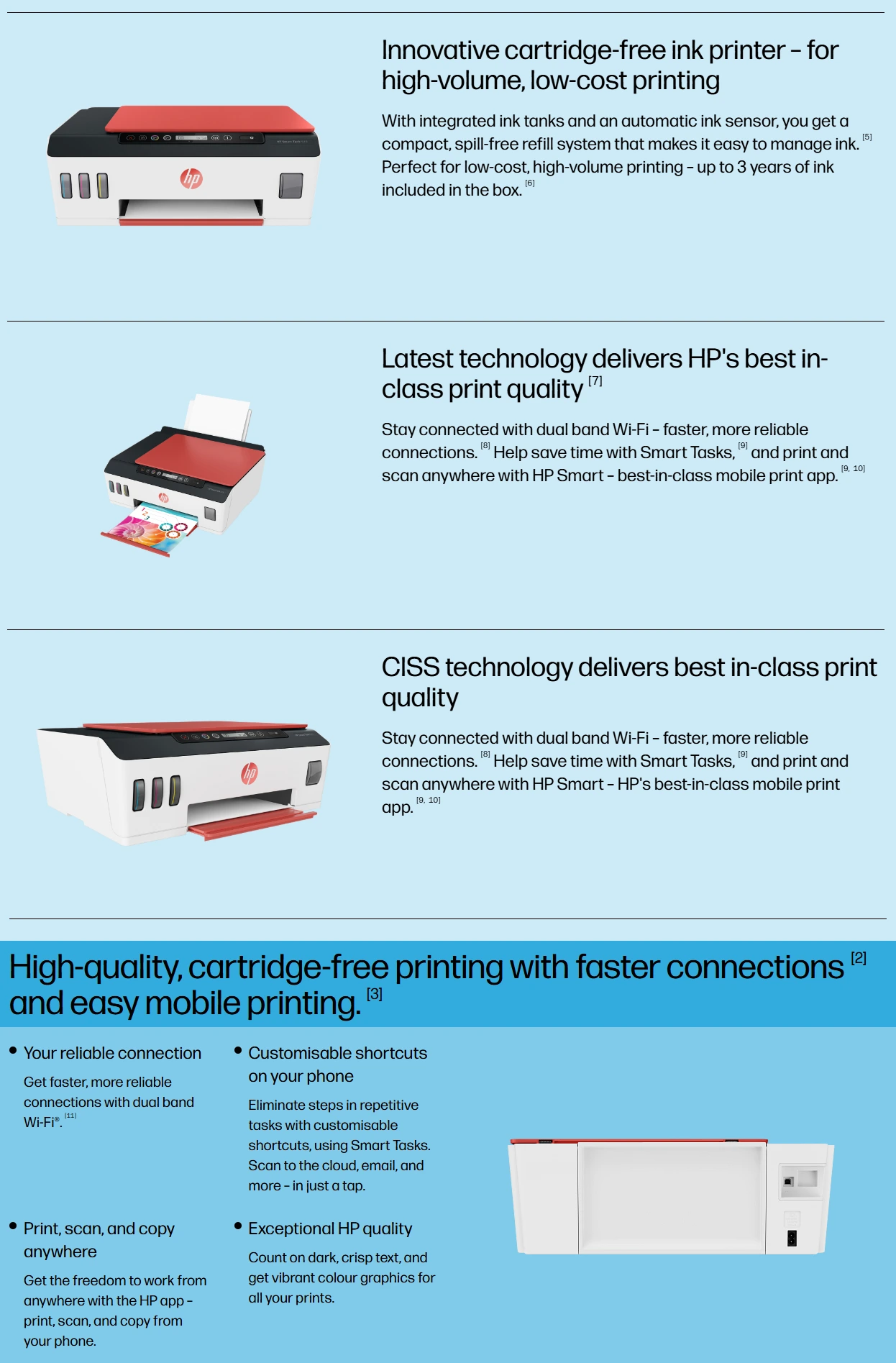 Description – HP Smart Tank 519 Wireless All-in-One Printer – Print, Scan, Copy – High-Capacity Ink – Up to 18,000 Black / 8,000 Color Pages – White/Red (3YW73A)