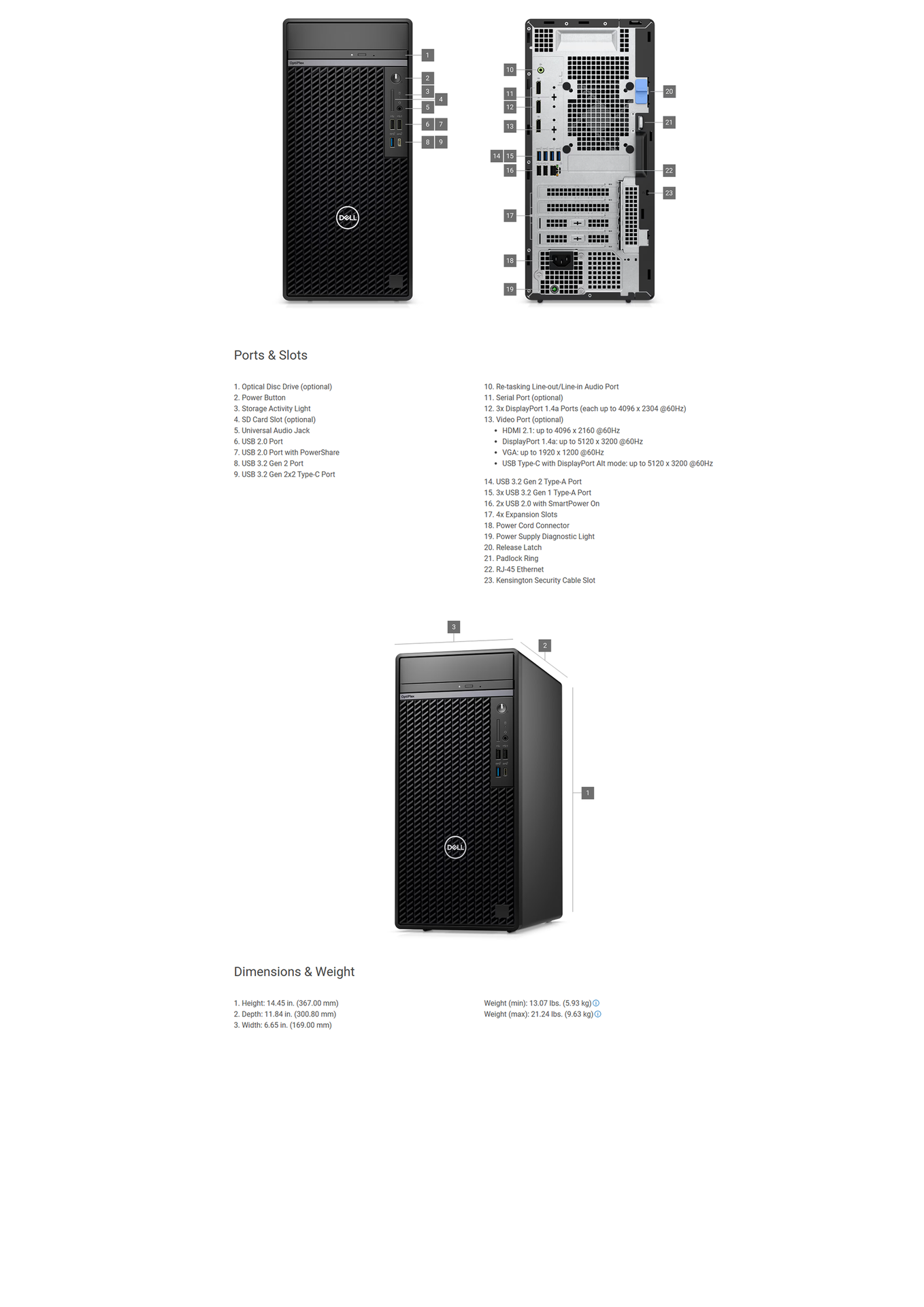 Specifications for – Dell Pro Tower QCT1250 Desktop – 14th Gen Intel Core i7-14700, 16GB DDR5 RAM, 512GB SSD, Intel UHD Graphics, Wi-Fi 6E, Windows 11 Pro