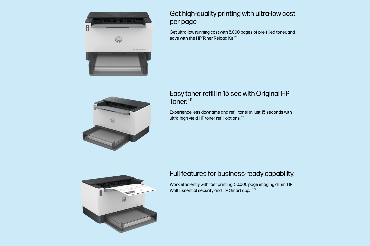 - The HP LaserJet Tank 1502w is a high-efficiency monochrome laser printer designed for small offices and workgroups that need fast printing, low running cost, and reliable wireless connectivity. With HP’s innovative Laser Tank technology, it delivers high-volume printing at a significantly lower cost per page. Featuring fast print speeds, Wi-Fi + Ethernet connectivity, mobile printing support, and strong security features, this printer is ideal for modern business environments.