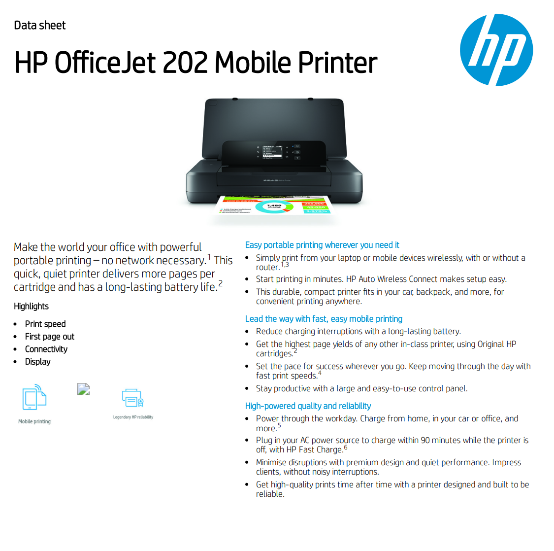 Description – HP OfficeJet 202 Color Portable Mobile Printer
