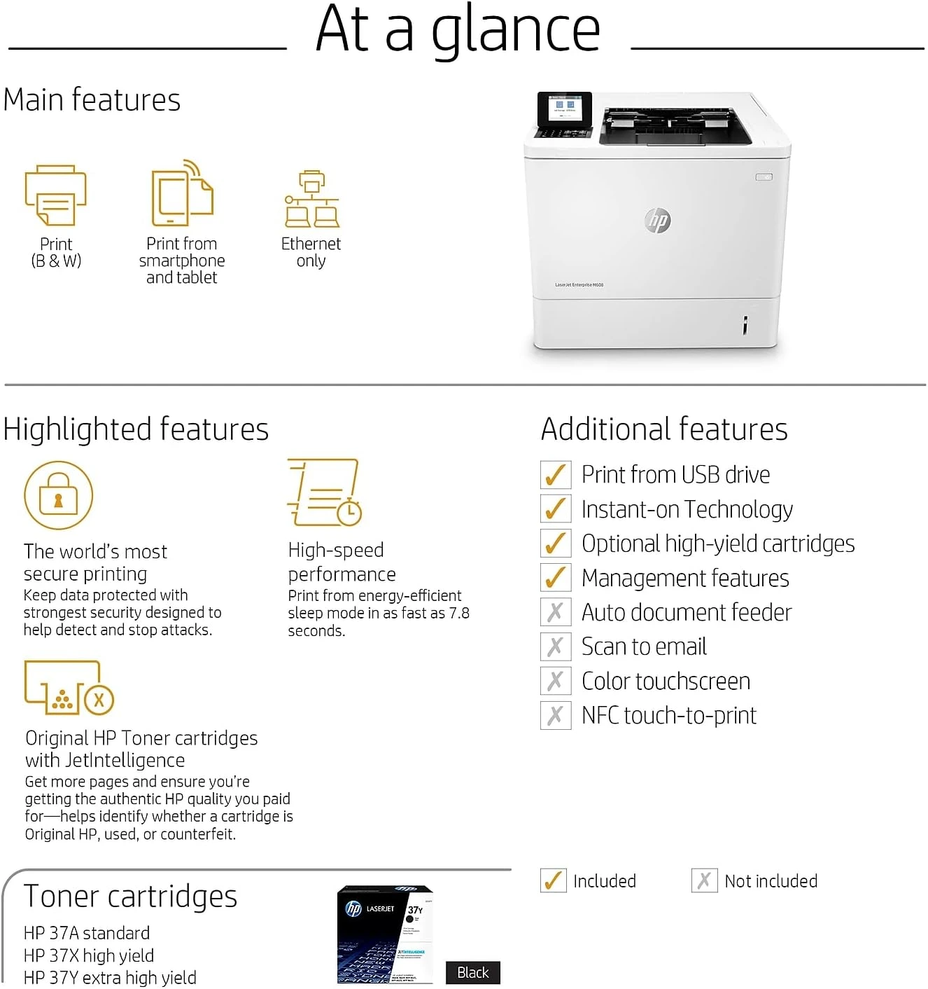 - High-speed HP Color LaserJet Enterprise M751dn printer with automatic duplex, 41 ppm color and black printing, network and optional wireless connectivity. Supports up to 150,000 pages monthly, 1.5 GB memory, optional 500 GB HDD, and professional print quality