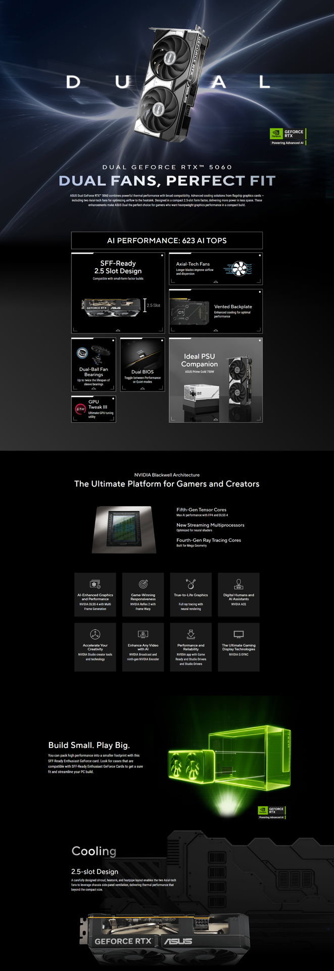 Description: ASUS Dual GeForce RTX 5060 OC Edition 8GB GDDR7 Graphics Card | DUAL-RTX5060-O8G | PCIe 5.0 | 2565 MHz Boost Clock | 3840 CUDA Cores