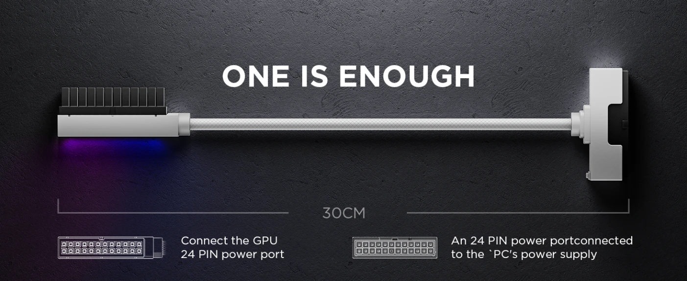 - High-performance 24-Pin right-angle RGB extension cable in Black (30 cm) and White (50 cm) with durable PVC, 18AWG copper wires, and up to 250W power delivery. Perfect for organized and stylish PC builds.